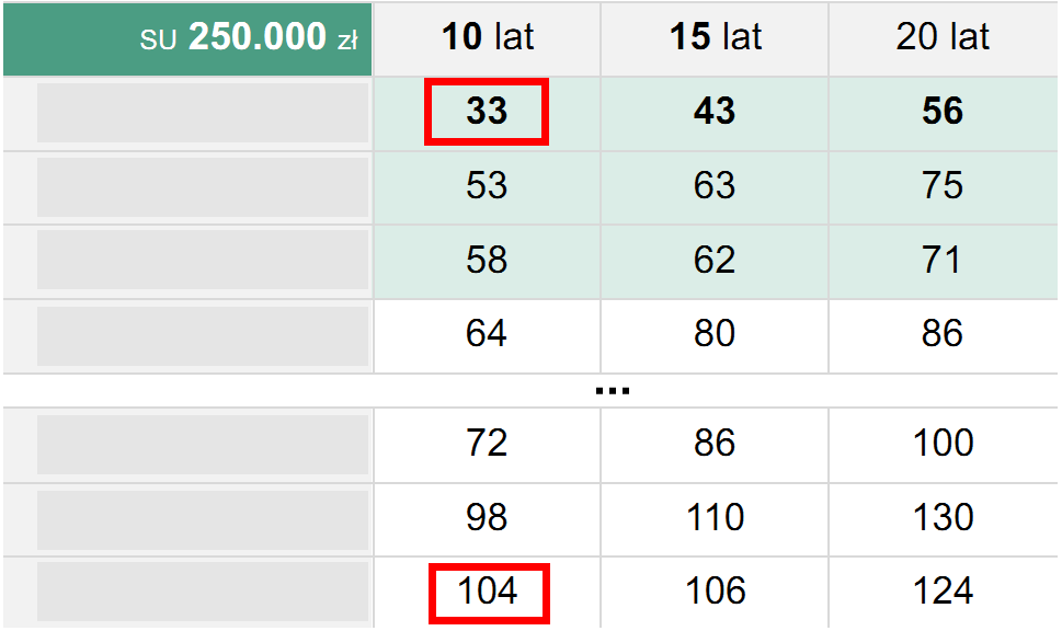 Oto porównanie cen miesięcznych ubezpieczenia na życie dla osoby w wieku 35-40 lat.