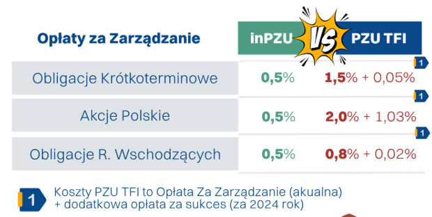 Skoro opłaty w ‘zwykłych’ bardzo ‘drogich’ funduszach PZU wynoszą nawet 3% rocznie! A w inPZU jedynie 0,5%.
