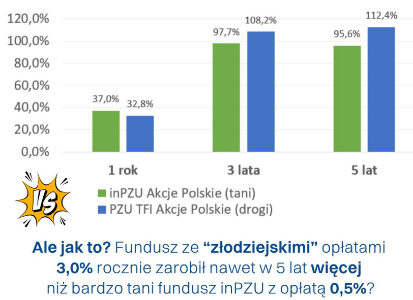 A takie są fakty – dużo droższy fundusz zarabiał więcej niż indeksowy – nawet w ciągu 5 lat.